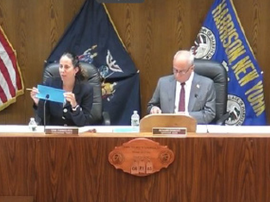 Harrison Mayor/Supervisor Richard Dionisio convened the August 21st Board meeting, with Police Patrol Lieutenant Frank Massaro displaying a blue envelope containing license, registration and emergency contact(s) to be carried in autistic drivers’ vehicles, as requested by Police Chief John T. Vasta through the NYS Sheriff’s Office (nysheriffs.org).